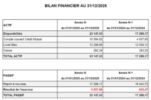 Le président, Bastien, ne se représente pas pour l’année 2026. La candidature de Claire D. est présentée à l’Assemblée Générale. Lors de sa première réunion, le Conseil d’Administration statuera sur la constitution du nouveau Bureau.