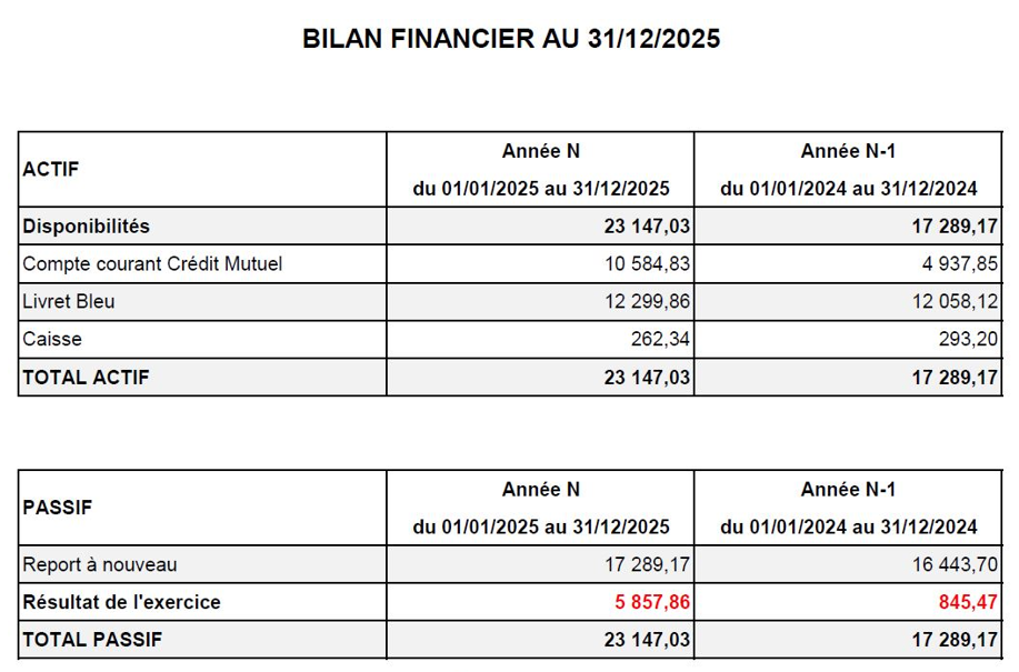 Les membres de l’Assemblée Générale adressent tous leurs remerciements aux membres du CA qui ont travaillé durablement durant cette année 2025, à Sabine, invitée au CA qui y a beaucoup apporté et à Bruno pour son aide technique. Des remerciements sont également adressés à Philippe, Thérèse et Fabrice.